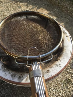 時々手網をひっくり返して、豆を動かしたりして、焦げないように注意です。